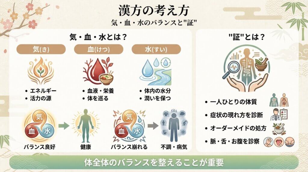 漢方の考え方:気・血・水のバランスと“証”の視点