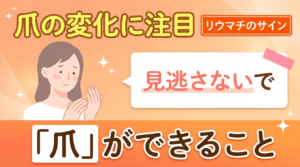 レイノー現象、指の腫れや硬化、ゴットロン徴候、爪の変化など、手指は膠原病のサインが集中しやすい部位です。「指がこわばる」「指先が白くなる」「指の関節に赤い斑点がある」などの変化は見逃さないようにしましょう。
